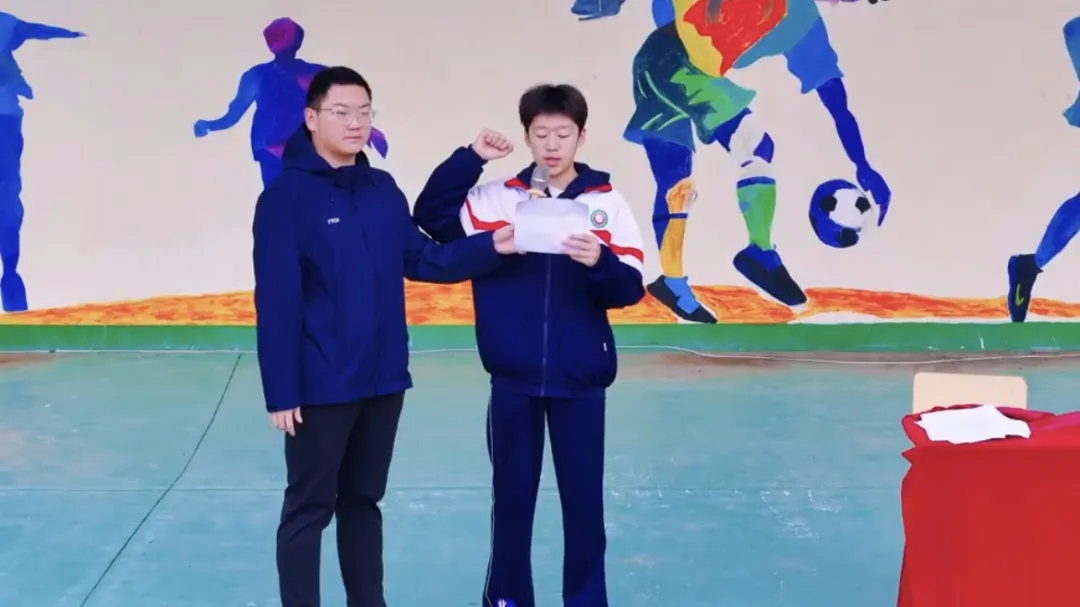 运动员同学代表郑重宣誓,将遵守规则、尊重对手、努力拼搏。