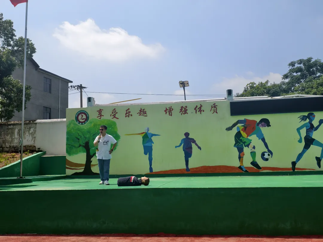 2025年6月6日上午大课间,乔乐学校操场上气氛热烈,全体学生齐聚在此,迎来了一场别开生面的急救知识学习活动——乔乐卫生院医生现场指导心肺复苏操。