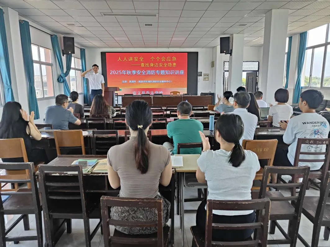 2025年9月15日,南昌市东湖区消防安全服务中心(南昌消联)在安义县乔乐学校成功举办了一场以“人人讲安全、个个会应急——查找身边安全隐患”为主题的秋季消防安全专题培训。全校教师齐聚,认真聆听讲座,积极参与互动,现场学习氛围浓厚。