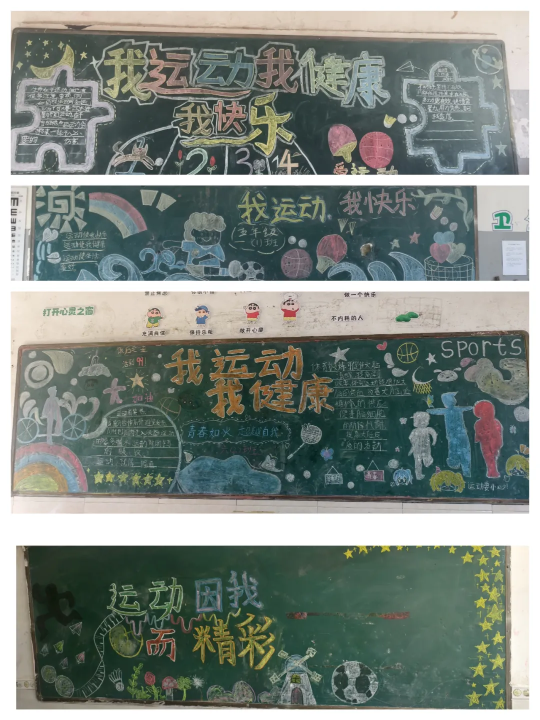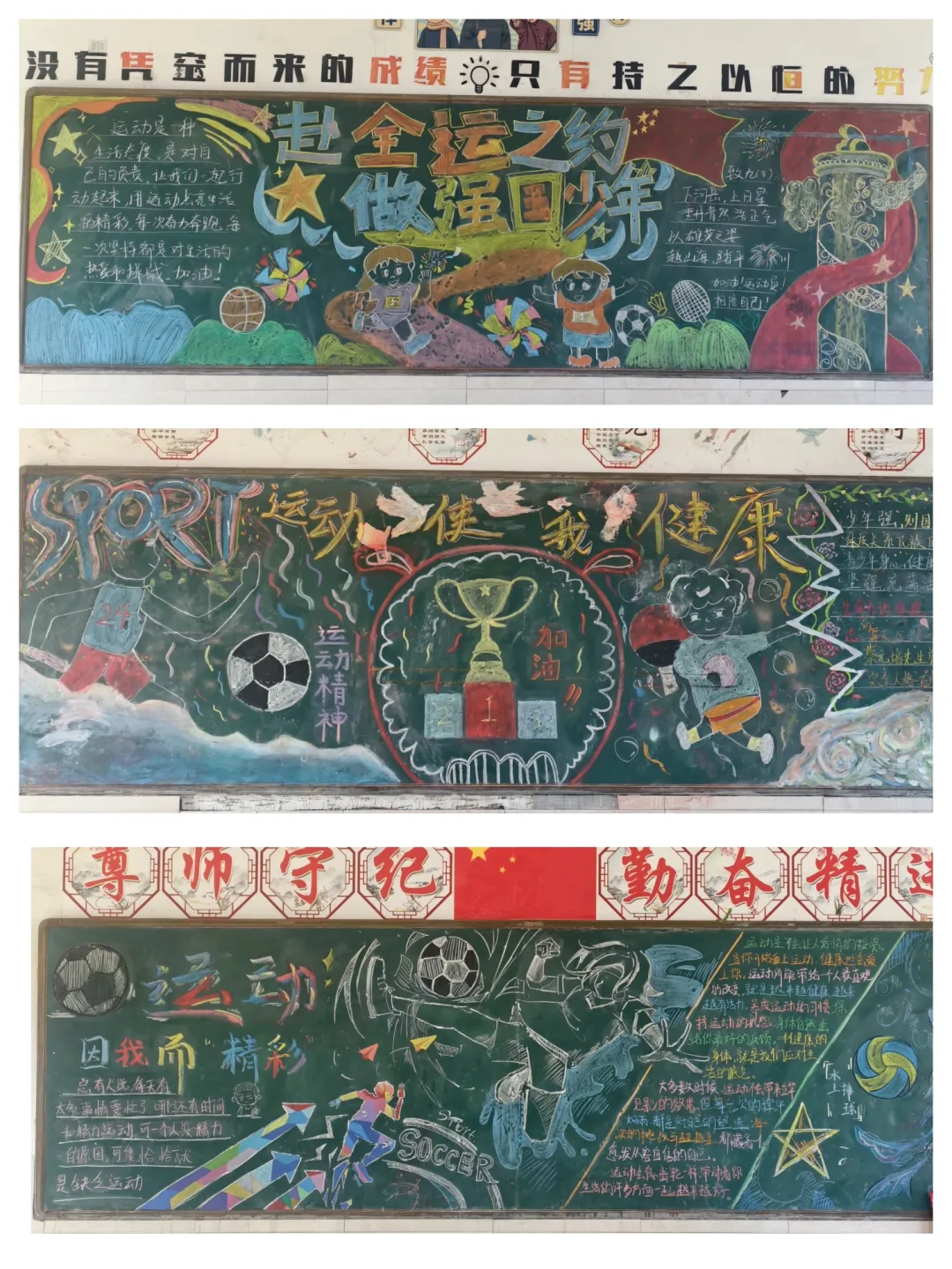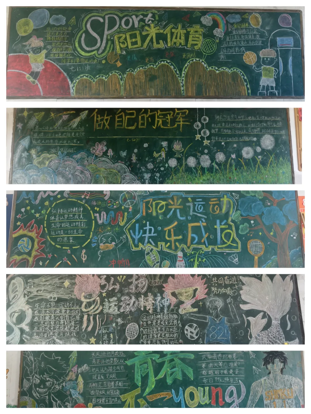 活动启动后,全校各班级积极响应,师生携手共同构思、设计、创作。同学们围绕“运动”与“文明”核心,将英雄城的城市精神与体育精神相融合——有的以灵动线条勾勒赛场拼搏瞬间,有的用真挚文字诠释文明运动内涵,有的借鲜明色彩展现少年活力,每一笔勾勒、每一抹色彩都凝聚着班级智慧,让黑板成为传递热爱、践行文明的生动载体。