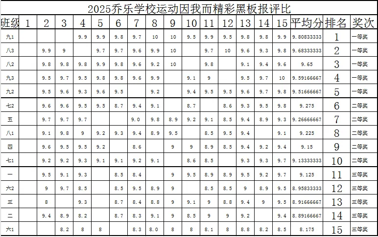 为厚植“爱我英雄城”的家国情怀,培育学生文明素养,丰富校园文化生活,11月14日,乔乐学校成功开展“爱我英雄城,见我文明行”系列活动之“运动因我而精彩”主题黑板报评比活动。经过一周的精心筹备与创作,各班以黑板为画布,呈现了一场兼具思想性与艺术性的文化盛宴。