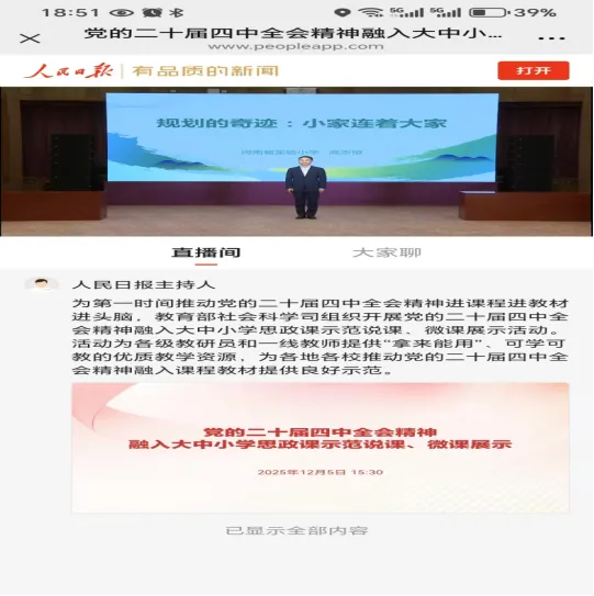 此次在线观摩的内容,小学以“规划的奇迹:小家连大家”为主题,引导学生厚植爱党爱国情感。中学以“规划的奇迹:从跟跑到领跑”为主题引导学生增强创新意识、树立报国志向。大学以“规划的力量:从愿景到盛景”为主题,引导学生理解我国的制度优势、坚定“四个自信”活动。