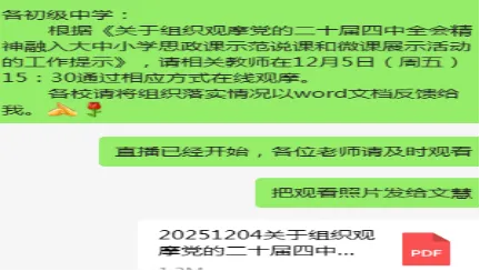 观摩学习开展前,乔乐学校按照上级要求在学校微信工作群发布相关学习文件,明确了在线观摩的学习安排和要求,强调了观摩学习的政治意义。乔乐学校全体教师通过相应方式全程在线观摩了此次直播。