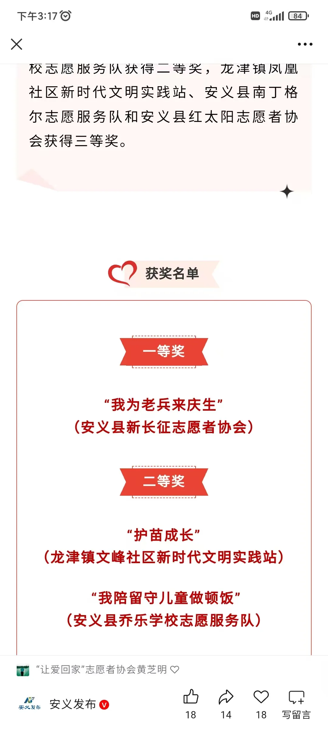 为深入学习贯彻习近平总书记关于志愿服务的重要论述和系列重要指示批示精神,大力弘扬志愿服务精神,挖掘优秀志愿服务项目,4月22日,“洪城有爱”安义县新时代文明实践志愿服务项目大赛在县文明实践中心举行。县委常委、宣传部部长杨峻出席活动。此次大陆赛由县委宣传部、县委社会工作部、县红十字会主办,来自全县各职能部门的15名文明实践员参加本次比赛。在比赛过程中,15名文明实践员紧紧围绕各自志愿服务项目,通过PPT展示的形式,从项目实施的背景、可行性、方法路径以及成效等方面进行了综合细致的讲解,生动展示了我县不同领域的新时代文明实践志愿服务内涵。经过一下午的激烈角逐,此次大赛最终评选出一等奖项目1个、二等奖项目2个、三等奖项目3个。我校陈天宇老师获得二等奖,第三名的优秀成绩。我校将以此次比赛为契机,继续深入开展“我陪留守儿童做顿饭”志愿服务活动,发扬志愿服务精神,给留守孩子带去快乐,给留守家庭带去温暖。