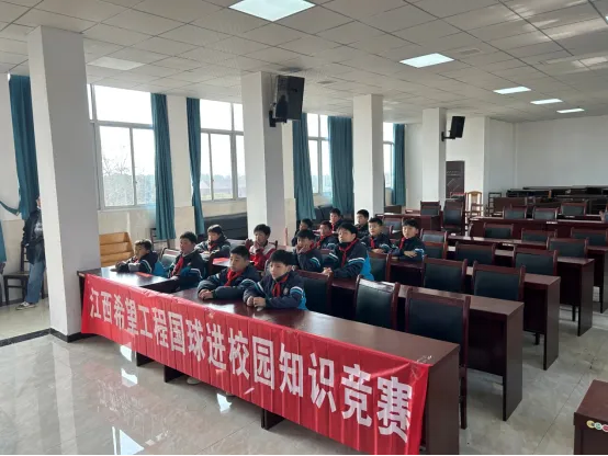 赛前江西希望工程国球进校园活动的志愿者在乔乐中学会议室向乔乐中学的兵乓球爱好者普及兵乓球运动知识,乔乐中学的同学们认真聆听,受益匪浅,系统地了解“国球”运动相关知识。随后进行了江西希望工程国球进校园知识竞赛活动,乔乐中学同学们踊跃竞答,场面非常火爆。