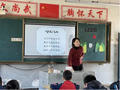 随后,黄肖老师执教三年级语文课《望天门山》。她引领学生漫步于古诗,以朗读为主线,通过“读准字音—读出画面—读懂诗意”层层推进的教学设计,引导学生感受古诗的韵律与意境。
