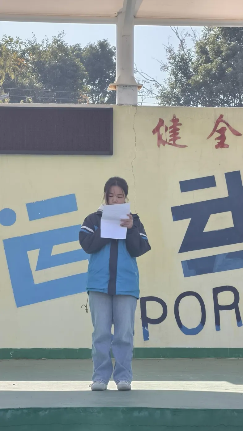 随后,她以“莫等闲,白了少年头,空悲切”的古训勉励同龄人,呼吁大家以“明确目标与计划”把握当下:课堂专注听讲、课后认真作业、广泛阅读拓视野,用勤奋与坚持书写青春,以坚定信念拥抱充满希望的未来。